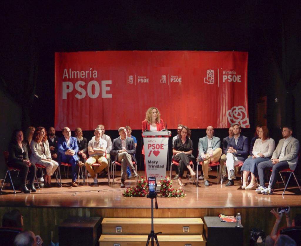 La candidata socialista al Ayuntamiento de Albox el próximo 28 de mayo, Mary Trinidad, ha mostrado su convencimiento de que su partido “ganará las elecciones” porque “ha quedado demostrado tenemos la mejor lista presentada en las últimas convocatorias electores” siendo, además, la “única opción progresista en el municipio”. “Mientras que el resto de partidos apuestan por la continuidad, nuestra lista es la única renovada, sin compromisos con el pasado y que no tiene deudas ante nadie. Somos la única garantía de cambio en Albox”, ha remarcado.