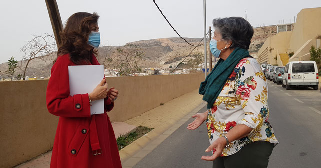 La concejala del PSOE en el Ayuntamiento de Almería, Carmen Aguilar (izquierda), junto a una vecina de Mesón Gitano