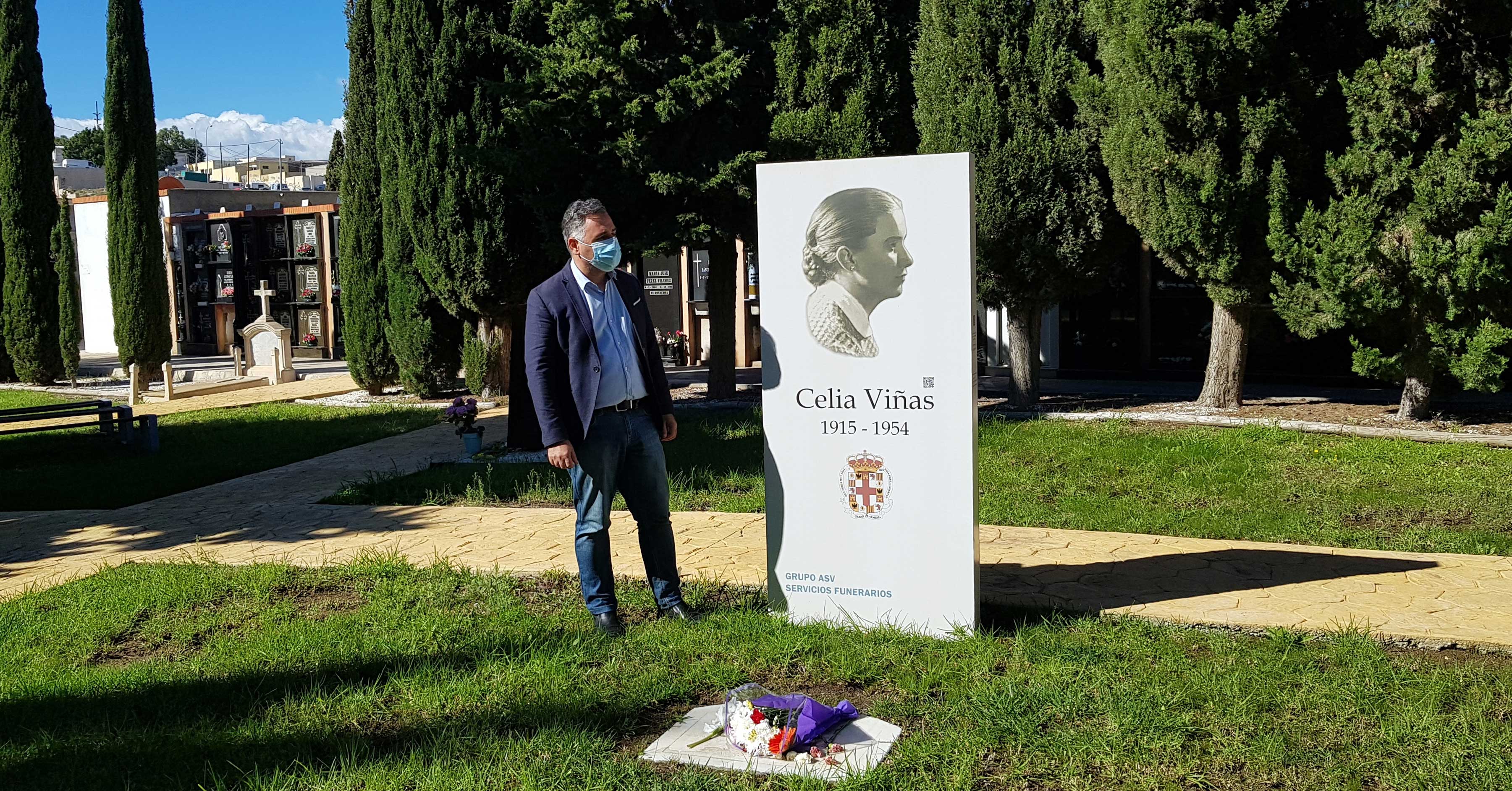 Antonio Ruano en la tumba de Celia Viñas
