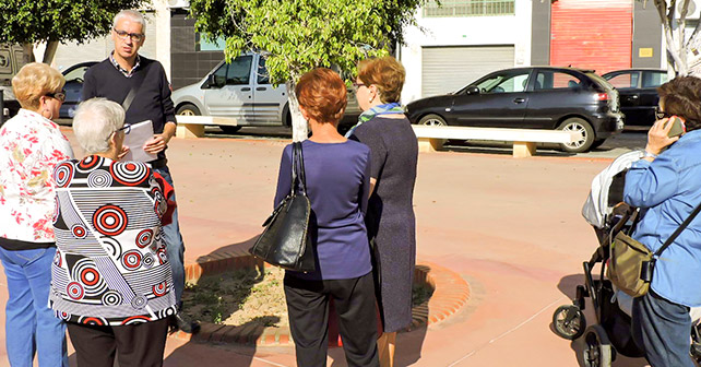 El concejal socialista en el Ayuntamiento de Almería, Manuel Vallejo con algunos de los vecinos de la plaza Nueva Andalucía