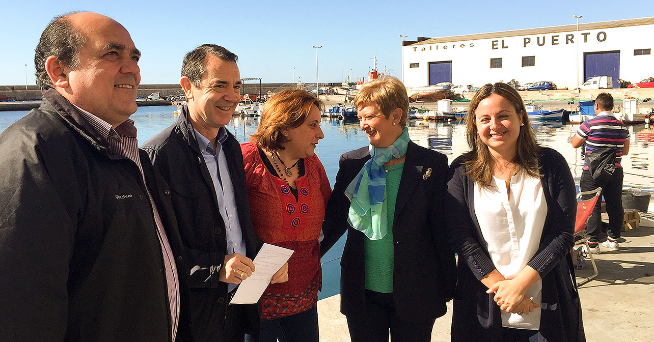 Pérez Navas, la presidenta de Asopesca y su gerente; además de las candidatas socialistas al Ayuntamiento, Consuelo Rumí y Carmen Núñez