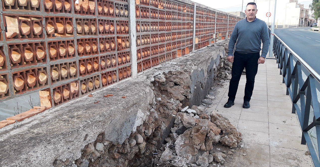 El concejal del Grupo Municipal Socialista en el Ayuntamiento de Almería, Indalecio Gutiérrez, ha exigido al alcalde de la ciudad que ordene la retirada de los restos de un muro que ha sufrido un desprendimiento en la acera de la carretera que une Venta Gaspar y El Boticario.