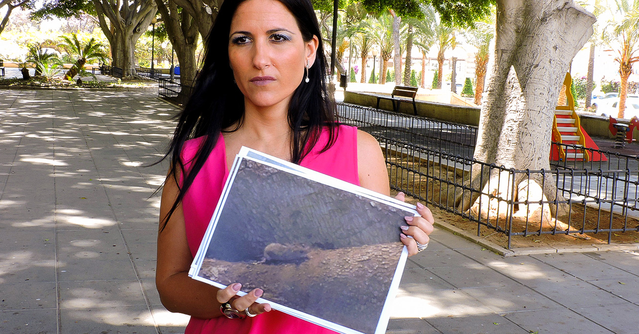 La concejala del PSOE en el Ayuntamiento de Almería, Inés Plaza, denuncia la plaga de ratas en el Parque Nicolás Salmerón