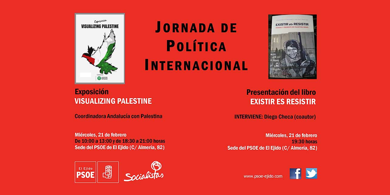 La sede del PSOE de El Ejido (C/ Almería, 82) será escenario el próximo miércoles, día 21, de una jornada de política internacional centrada en Palestina.