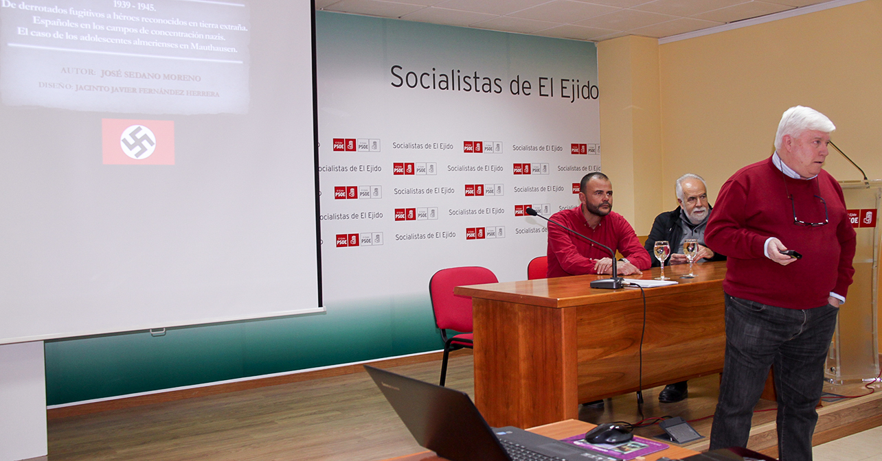 La sede de los socialistas ejidenses fue escenario anoche de una jornada dedicada a la memoria histórica protagonizada por José Sedano, estudioso de la Segunda Guerra Mundial en general, y del paso de ciudadanos españoles por el campo de concentración nazi de Mauthausen, en particular.