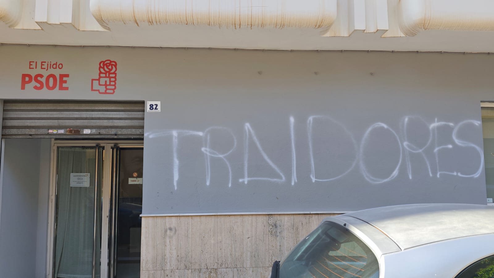 El PSOE de El Ejido ha condenado el nuevo ataque vandálico del que ha sido objeto la sede del partido en la madrugada de este lunes. La casa de los socialistas ejidenses, ubicada en la calle Almería, ha amanecido hoy, de nuevo, con pintadas en su fachada principal, como ya ocurriera hace unos meses.