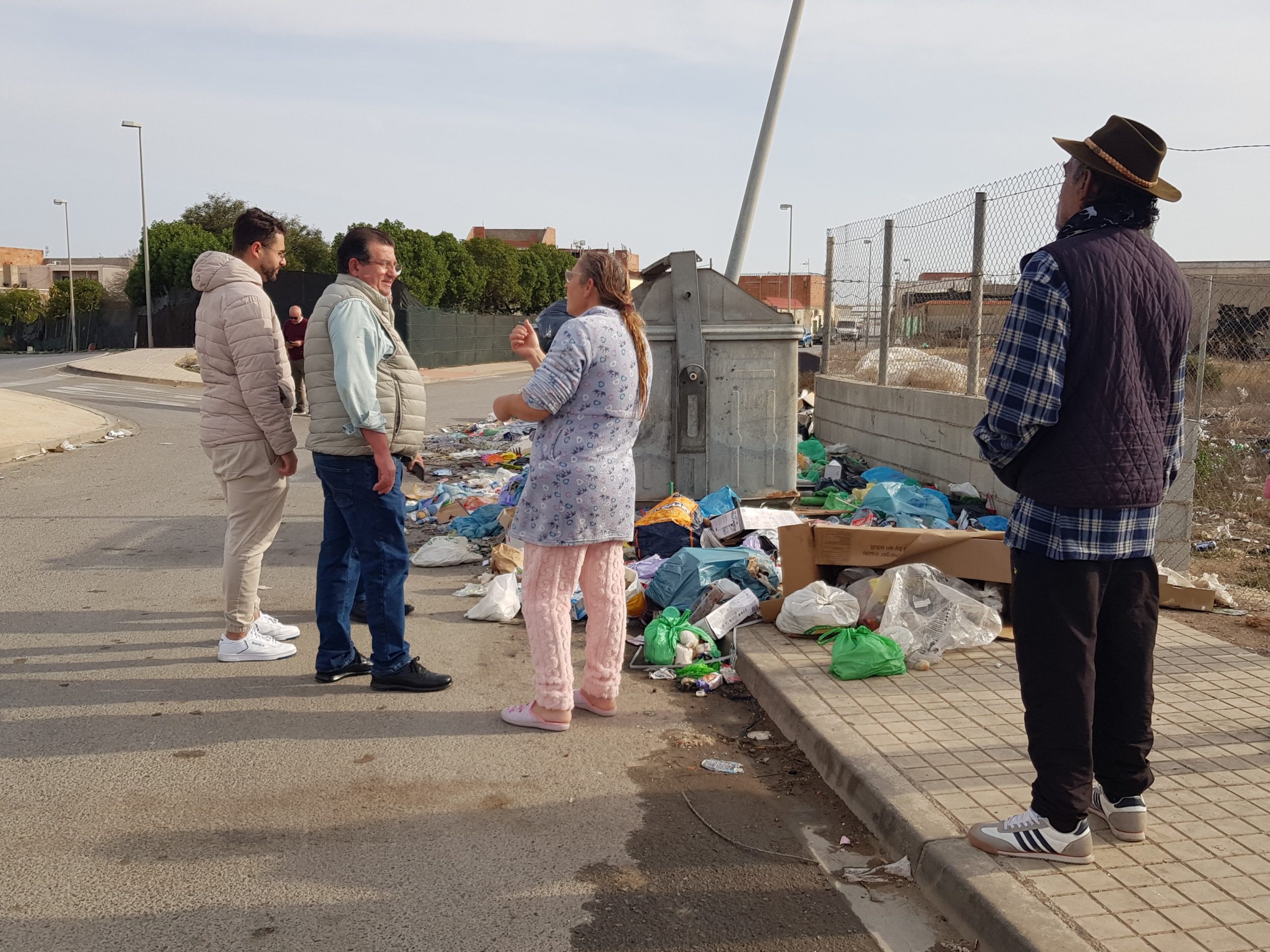 La ruta ha continuado por el Pozo de la Tía Manolica, donde el PSOE ha mostrado al concejal la acumulación de residuos que se produce periódicamente junto a los contenedores ubicados a la entrada de la zona antigua de la barriada.