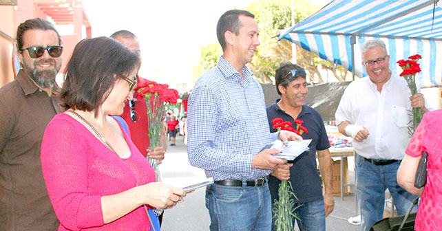 Tomás Elorrieta, candidato socialista a la alcaldía de El Ejido, ha realizado esta mañana un recorrido por el mercadillo de Balerma, para presentar su programa a los vecinos de este núcleo ejidense. Junto a él, han participado en este recorrido el diputado ejidense en el Parlamento de Andalucía José María Martín, los candidatos socialistas a las Elecciones Municipales Ángeles Carvajal Martínez, Juan Alberto Castillo Mena y Gabriel Giménez Crespo, y el candidato socialista a la Junta Local de Balerma Miguel Suárez Hernández.