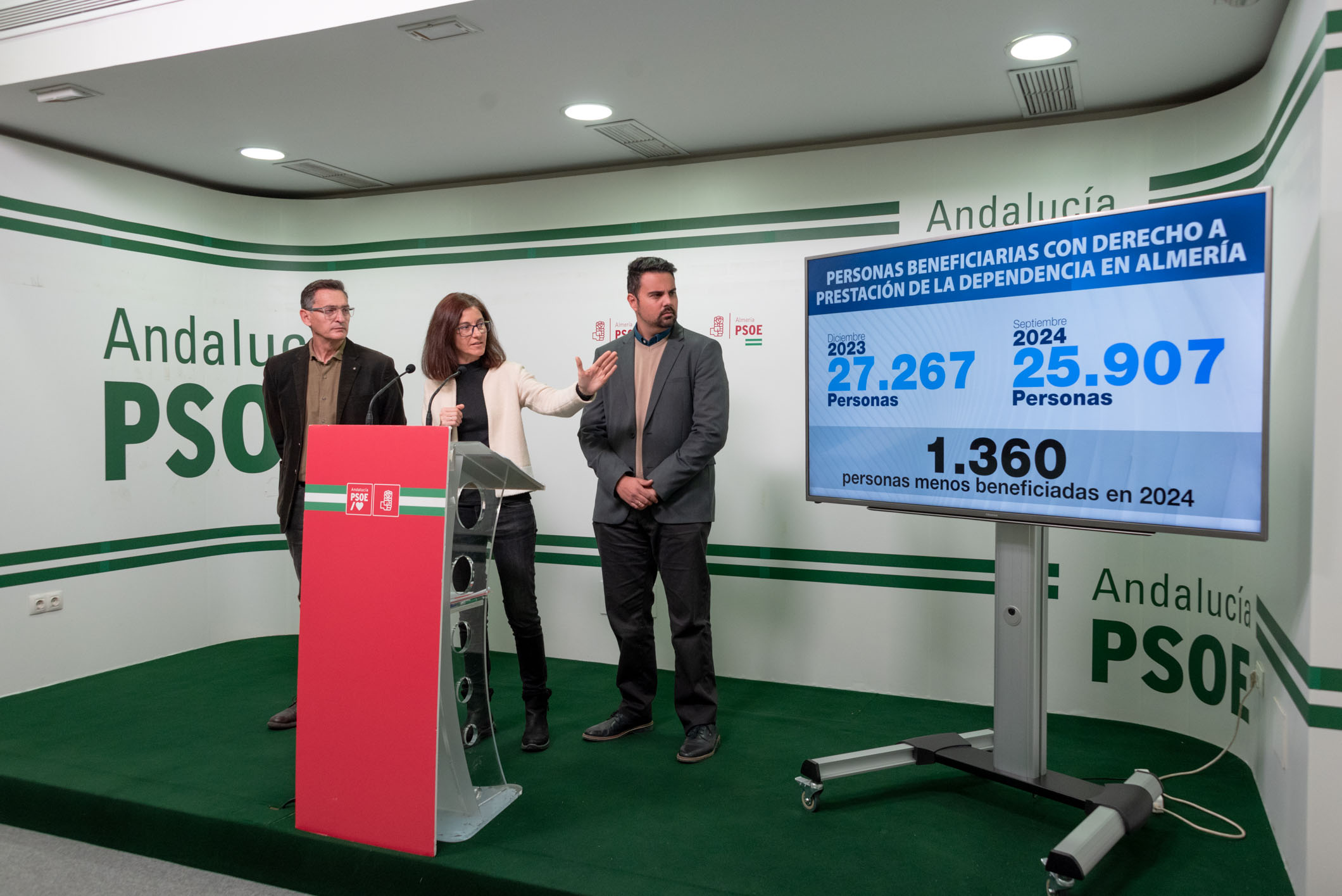 “Las personas que solicitan la prestación por la Ley de Dependencia tienen que esperar, en Andalucía, dos años para conseguirla”, ha lamentado y ha llamado la atención sobre unas cifras de la propia Administración Andaluza que son muy esclarecedoras, a su entender, sobre el sistema de gestión de la Junta del PP. “En diciembre de 2023 había 27.267 personas beneficiarias de la Ley de Dependencia en Almería y, en septiembre de 2024, las últimas cifras que nos ha facilitado la Junta, son 25.907” lo que supone un descenso de 1.360 personas. “¿Qué explicación tiene esto?”, se ha preguntado y, también, cuestiona “dónde está el dinero” del que presume Moreno Bonilla.