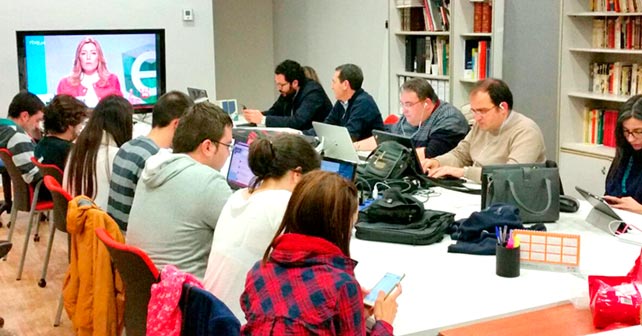 Sede de la Agrupación Local del PSOE de Almería, en la que el candidato del PSOE a la Alcaldía, Juan Carlos Pérez Navas, vio el debate de TVE acompañado por miembros de la candidatura al Ayuntamiento y militantes