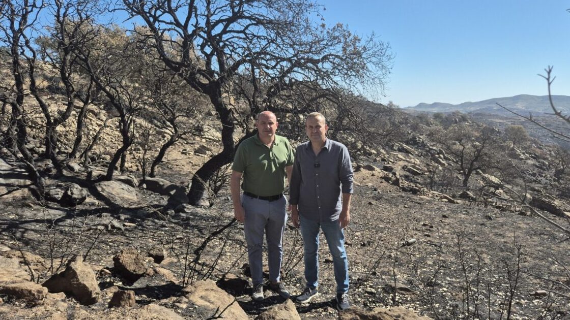 Antonio Martínez, que ha visitado, junto al alcalde de Lubrín, Domingo Ramos, las zonas afectadas por los incendios que sufrió el municipio desde el pasado mes de julio, ha pedido a la Junta de Andalucía “depurar todas las responsabilidades en las causas del incendio” y que ponga en marcha un programa plurianual de restauración de las “impresionantes” infraestructuras de piedra seca que han quedado expuestas a los procesos erosivos en las decenas de montes protectores de propiedad particular afectados.