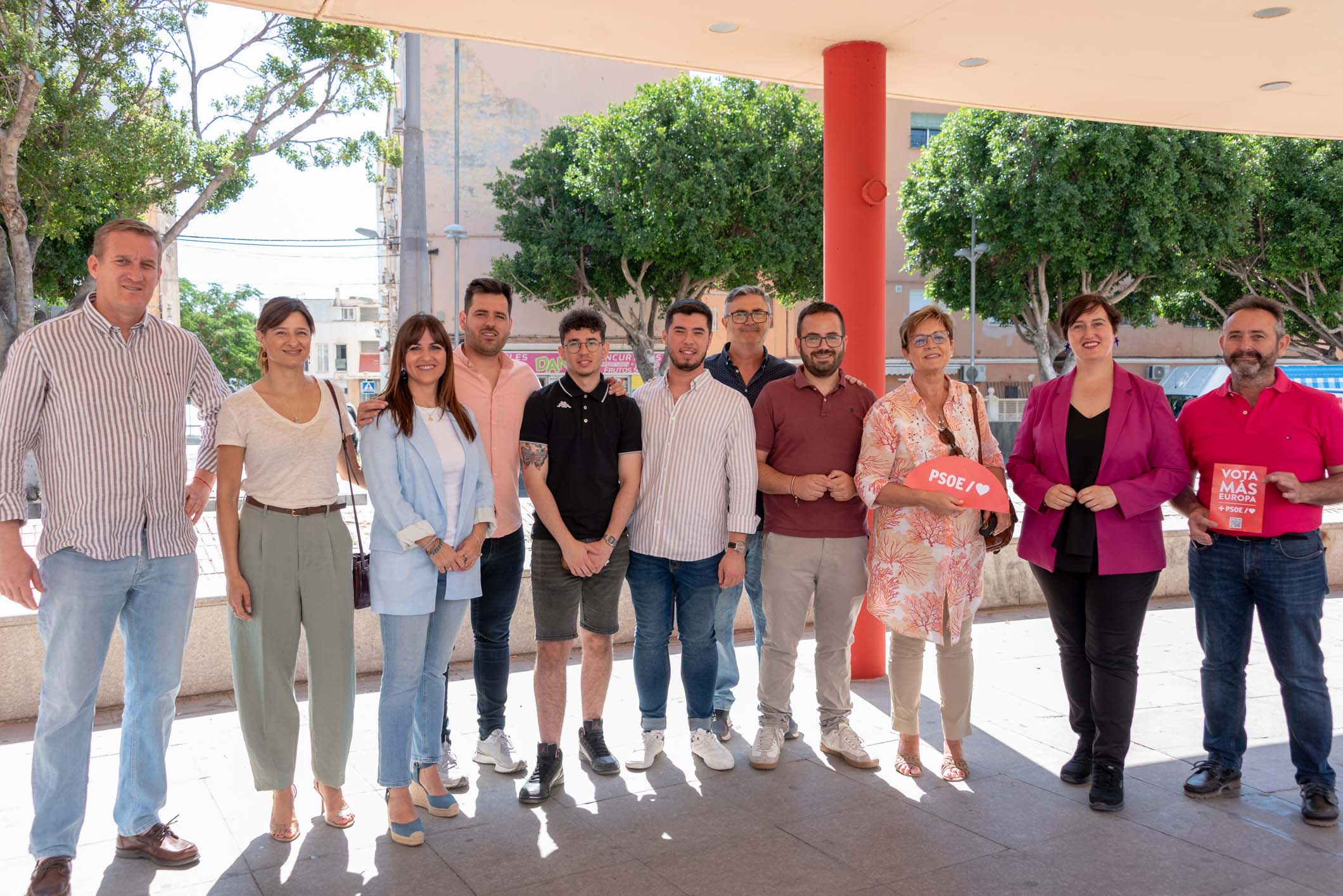 El candidato al Parlamento Europeo, Alejandro Moyano (4º izq.) y la diputada nacional del PSOE de Almería, Inés Plaza (3ª izq.) junto a otros miembros y concejales del PSOE de Almería