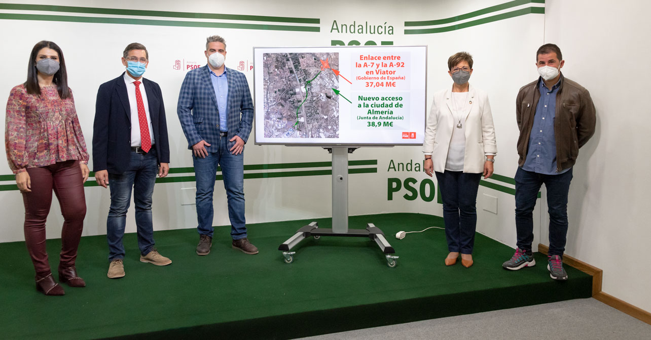 El secretario general del PSOE de Almería, José Luis Sánchez Teruel, ha instado al Gobierno de Moreno Bonilla a acometer la ejecución de las obras del Trazado del Acceso Norte a Almería desde el enlace de Viator en la Autovía del Mediterráneo “de forma coordinada y paralelamente” a las obras que ejecutará el Ministerio de Transportes, Movilidad y Agenda Urbana del Gobierno de España consistentes en la ‘Remodelación del enlace entre la Autovía del Mediterráneo y la Autovía A-92 en Viator’, en una comparecencia en la que le han acompañado la portavoz del PSOE en el Ayuntamiento de Almería, Adriana Valverde Tamayo, y el alcalde de Viator, Manuel Flores Malpica.