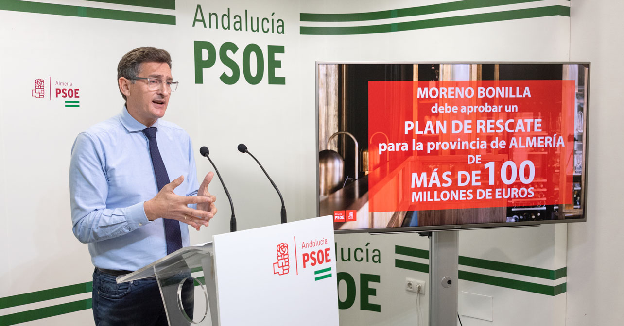 El PSOE de Almería ha reclamado hoy al Gobierno andaluz que ponga en marcha, de manera inmediata, un Plan de Rescate para la provincia de Almería, que ayude a compensar el desplome de la economía provocado por la pandemia de covid-19. El secretario general del PSOE provincial, José Luis Sánchez Teruel, ha recordado que el Gobierno andaluz tiene actualmente en torno a 1.700 millones de euros disponibles, entre el superávit de 847 millones declarado al cierre de 2020 y los 826 millones que le transfirió el Gobierno central de manera extraordinaria para ayudar a los sectores gravemente afectados por la pandemia, por lo que el Plan de Rescate que exige el PSOE debería estar dotado con, al menos, 100 millones de euros “sólo para ayudar a los autónomos y las empresas de Almería”.