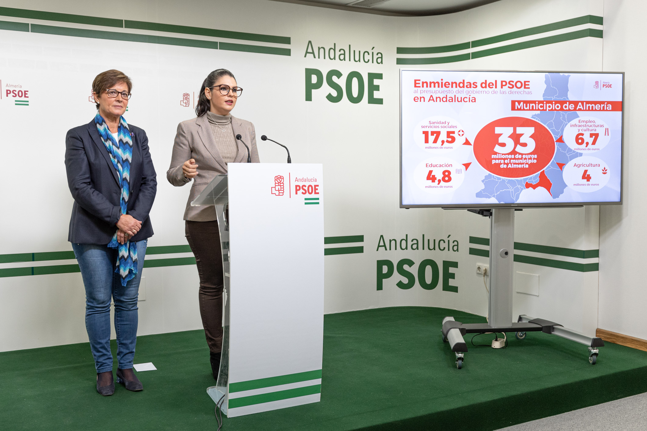 El PSOE de Almería ha reclamado al Gobierno de las derechas 33 millones de euros con cargo a los Presupuestos de Andalucía para 2020 con cuya inversión directa en la capital almeriense se paliarían las “ausencias” de importantes proyectos y obras para el municipio que PP y Ciudadanos han obviado de las cuentas para el próximo ejercicio y que se puede deber “a su falta de compromiso con la capital o a su gran desconocimiento sobre las necesidades de Almería”, según ha interpretado esta mañana la parlamentaria autonómica del PSOE de Almería, Noemí Cruz Martínez.