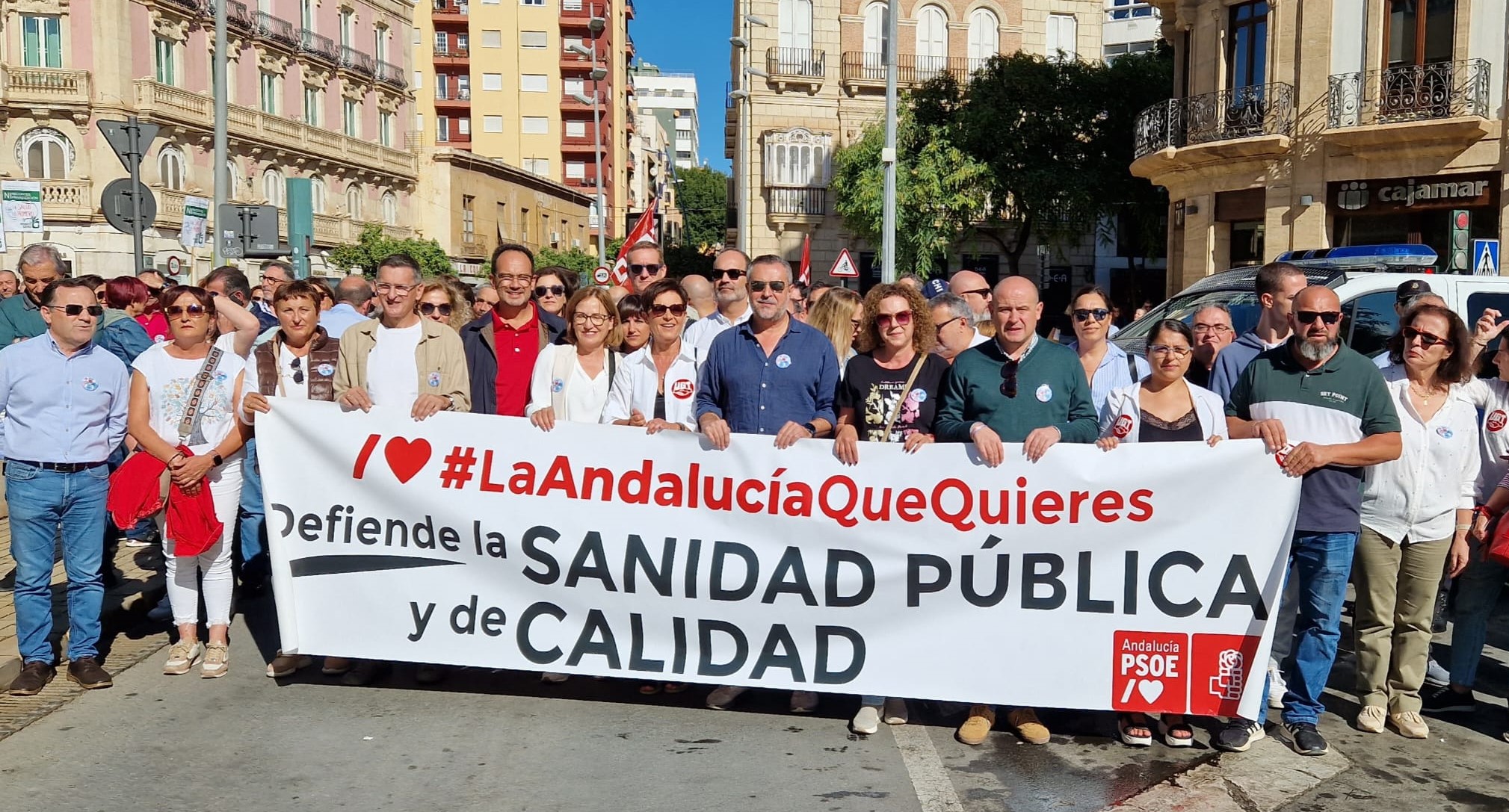 Durante la manifestación convocada por la Coordinadora Andaluza de Mareas Blancas, en la que ha participado junto a otros representantes del PSOE de toda la provincia, el dirigente socialista ha acusado al Gobierno andaluz del Partido Popular de haber generado este “enorme problema” con la idea de “justificar” el plan de choque por el que le van a transferir 734 millones de euros a la sanidad privada, en lugar de reforzar la pública con más medios y profesionales sanitarios, “que hubiera sido lo lógico”. Por eso, ha indicado, “hoy le decimos alto y claro a Juanma Moreno que la sanidad pública no está en venta”.