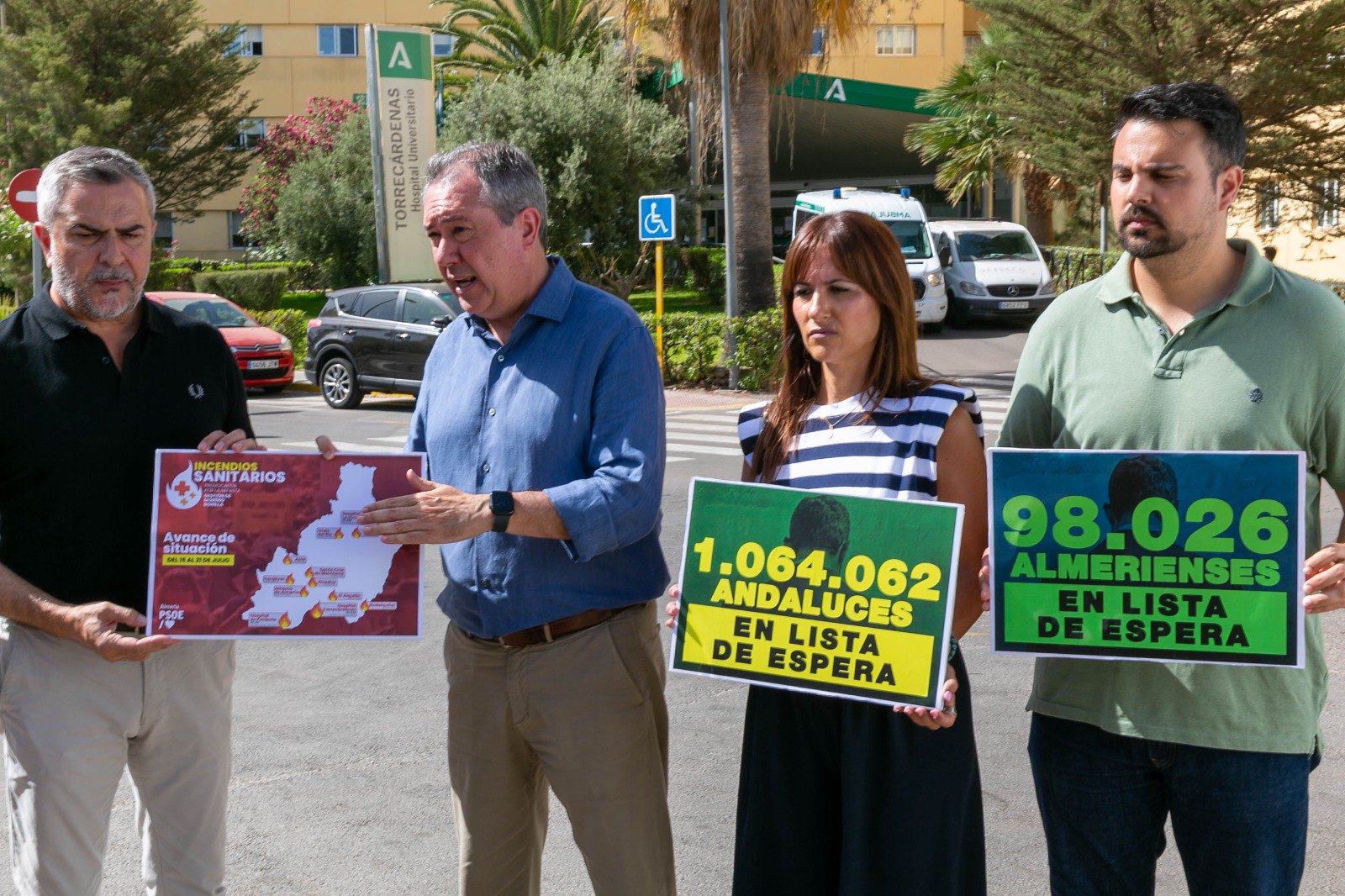 Espadas, a las puertas del Hospital Universitario Torrecárdenas en Almería, ha subrayado que “ya está bien de paños calientes y de mentiras a la hora de hablar de la sanidad pública en Andalucía”, haciendo referencia a unas listas de espera que crecen de nuevo para quienes esperan una cita con el especialista o una intervención quirúrgica, pero que siguen ocultando el dato de quienes esperan una prueba.