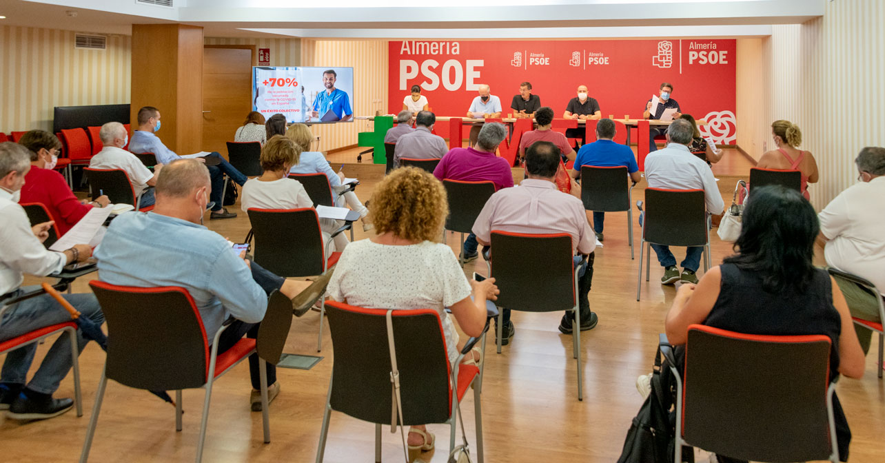 La Comisión Ejecutiva del PSOE de Almería ha acordado exigir al Gobierno de Moreno Bonilla que recupere, de manera inmediata, la atención presencial normalizada en los centros de salud y ha mostrado su rotundo rechazo a las últimas decisiones tomadas por la Junta de Andalucía en materia de educación, especialmente las referentes al drástico recorte de docentes que se ha producido de cara al nuevo curso escolar y al abandono de los ayuntamientos, a los que se les ha endosado, por segundo año consecutivo, la responsabilidad de desinfectar los centros escolares frente a la pandemia de covid-19.
