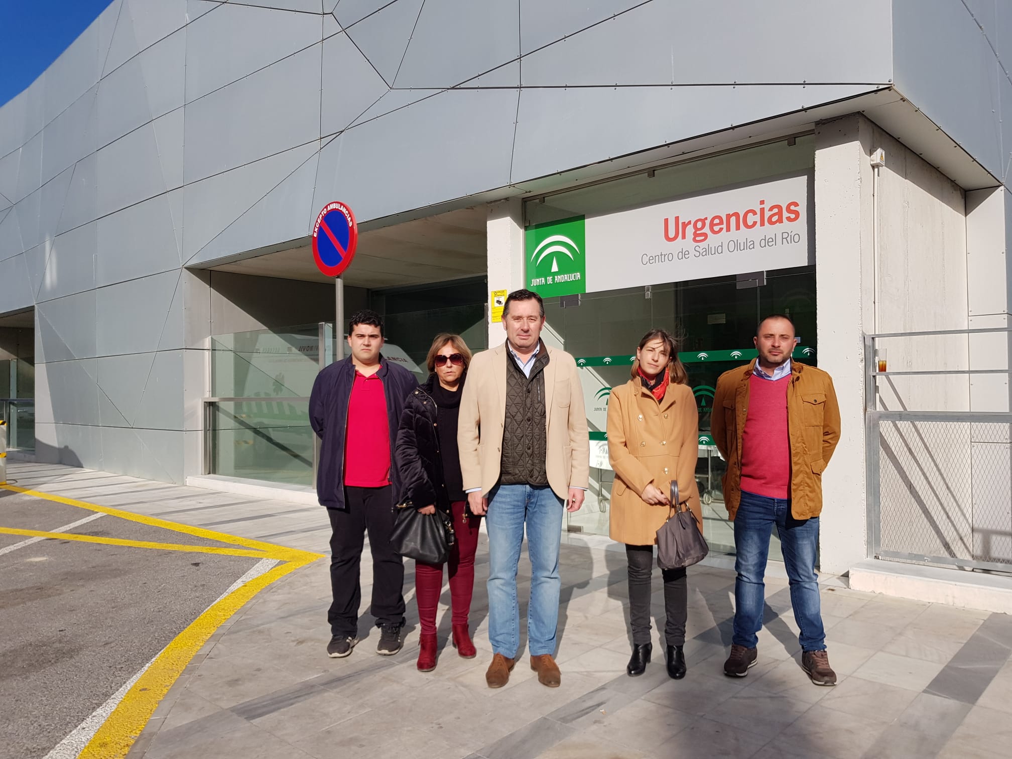 El portavoz del PSOE en el Ayuntamiento de Olula del Río, Diego Castaño, junto a otros concejales y vecinos en el centro de salud