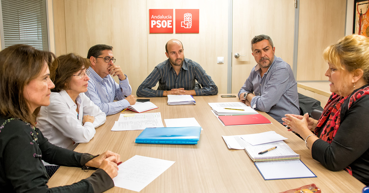 Reunión del portavoz del PSOE en la Diputación de Almería, Juan Antonio Lorenzo, y la secretaria de Política Municipal e Institucional del PSOE de Almería, Adela Segura, con delegados sindicales de UGT en Galasa