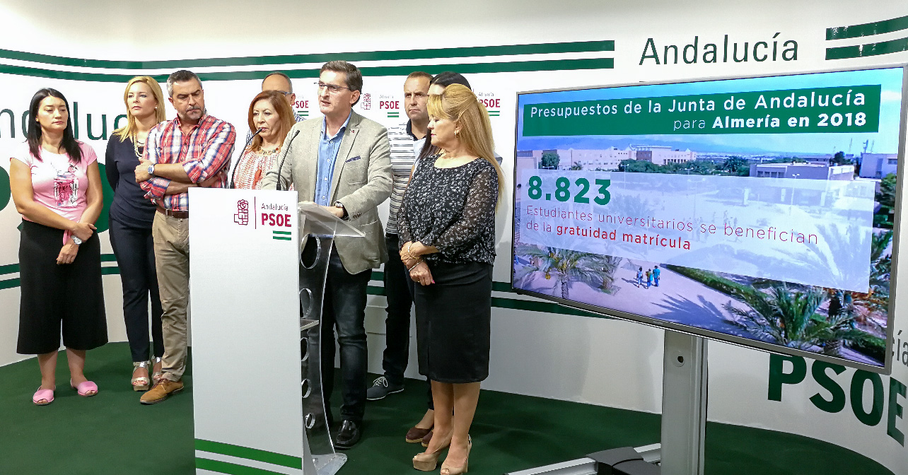 El secretario general del PSOE de Almería, José Luis Sánchez Teruel, ha destacado que la Junta de Andalucía ha previsto un gasto de 1.678 euros por habitante en la provincia para el mantenimiento de la Sanidad, Educación y Servicios Sociales, dos de los pilares del estado del bienestar y ejes centrales de las políticas sociales del Gobierno andaluz. Además, según ha adelantado el líder de los socialistas almerienses, el gasto en obra pública para 2018 por habitante en Almería se moverá en una horquilla de entre 274 y 350 euros, cifra muy superior a la ya considerada excelente del presente ejercicio cuando, según datos de la patronal (Fadeco), durante el primer semestre del año la Junta ha gastado 206 euros por habitante almeriense. Estos datos sitúan a la Comunidad Autónoma andaluza como administración líder en inversión en la provincia.