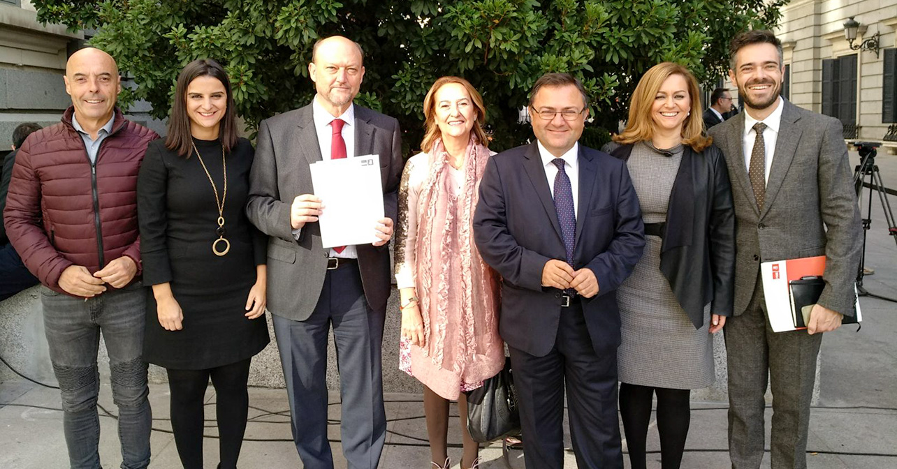 El secretario de Medio Rural, Agricultura y Pesca del PSOE de Andalucía y diputado en el Congreso por Sevilla, Antonio Pradas, acompañado de diputados del resto de las provincias andaluzas, ha registrado este miércoles en la Cámara Baja una batería de preguntas dirigidas a la Ministra de Agricultura para conocer las gestiones realizadas hasta ahora por el Gobierno del PP en relación al contencioso entre la Unión Europea y la Administración Trump sobre la importación de aceituna de mesa.