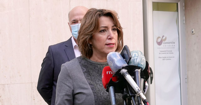 La secretaria general del PSOE de Andalucía, Susana Díaz, ha mostrado su apoyo a las reivindicaciones de los comerciantes andaluces que se han manifestado esta mañana por las calles de Córdoba. Díaz, que ha mantenido un encuentro con la Confederación Comercio Andalucía, ha destacado que el gobierno andaluz “solo ha planteado medidas restrictivas y no medidas para paliar el daño que este sector está sufriendo”. Así ha recordado que el comercio minorista supone el 70% del comercio de Andalucía, “más de 400.000 andaluces viven de este sector así como 3 de cada 10 empresas”. Díaz ha destacado que el comercio minorista se está viendo muy afectado por las restricciones fruto de la pandemia y “están sufriendo mucho por la competencia desleal de las grandes superficies que sí pueden vender su productos y ellos no”.