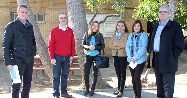 Raul Enríquez, Juan Godoy y Tomás Elorrieta, junto a tres represemtantes del AMPA del CEIP Ramon y Cajal